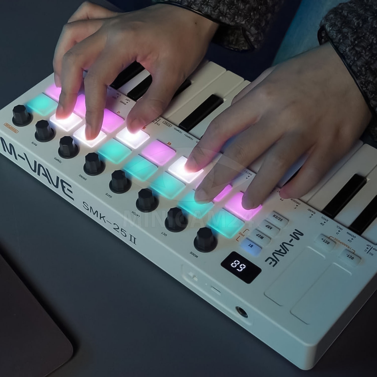 В отличие от 1-ого поколения миди-кдавиатуры M-VAVE SMK-25, у клавиатуры 2-ого поколения теперь больше пэдов: больше возможностей раскрыть свое творчество! Порт педали сустейна и порт MIDI-выхода в одном устройстве. Совместимость со всеми рабочими станциями цифрового аудио. Функция интеллектуальных аккордов и гаммы позволяет легко находить вдохновение.